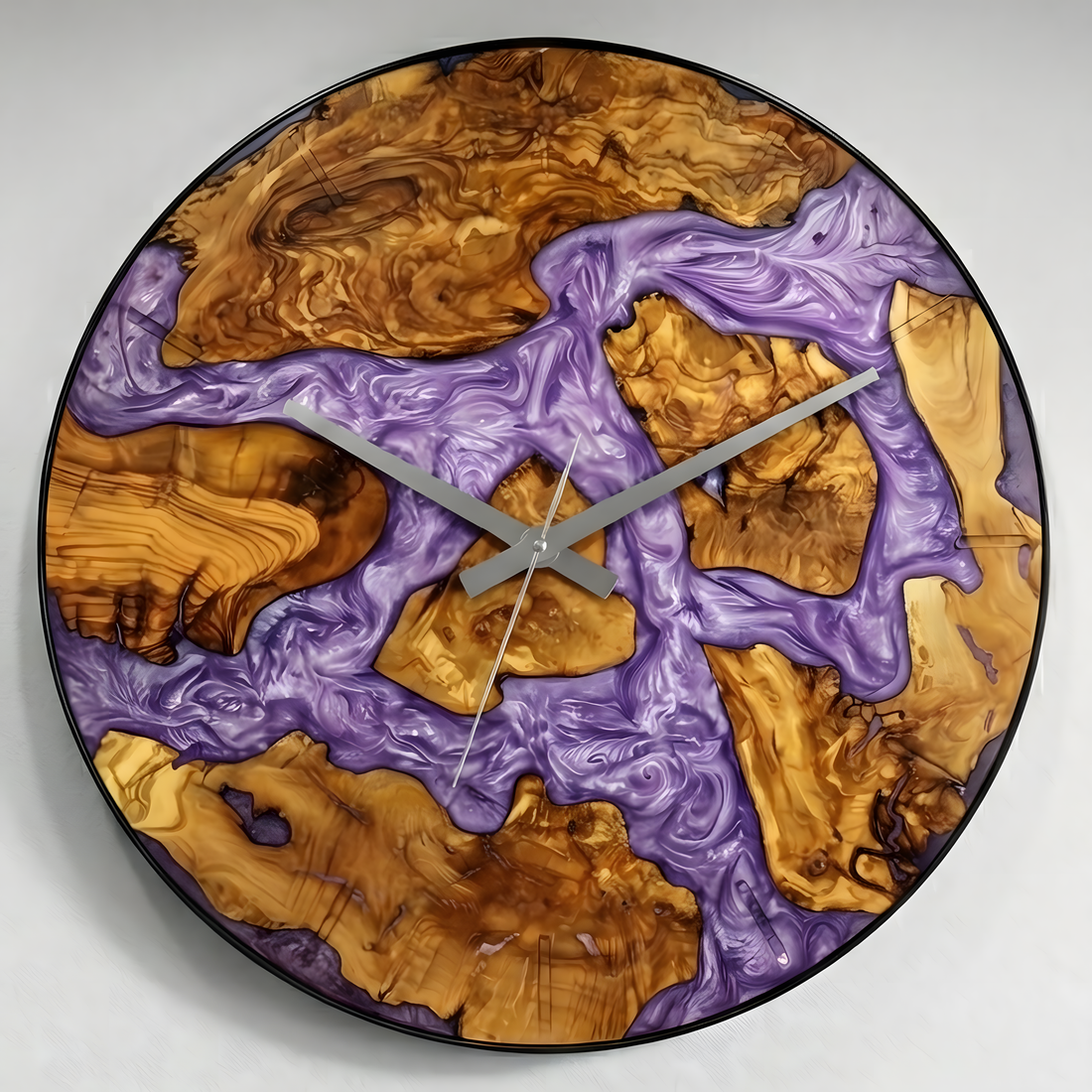 ZEYTİN AĞACI LİLA EPOXY ÇEMBERLİ DUVAR SAATİ– Ø48cm
