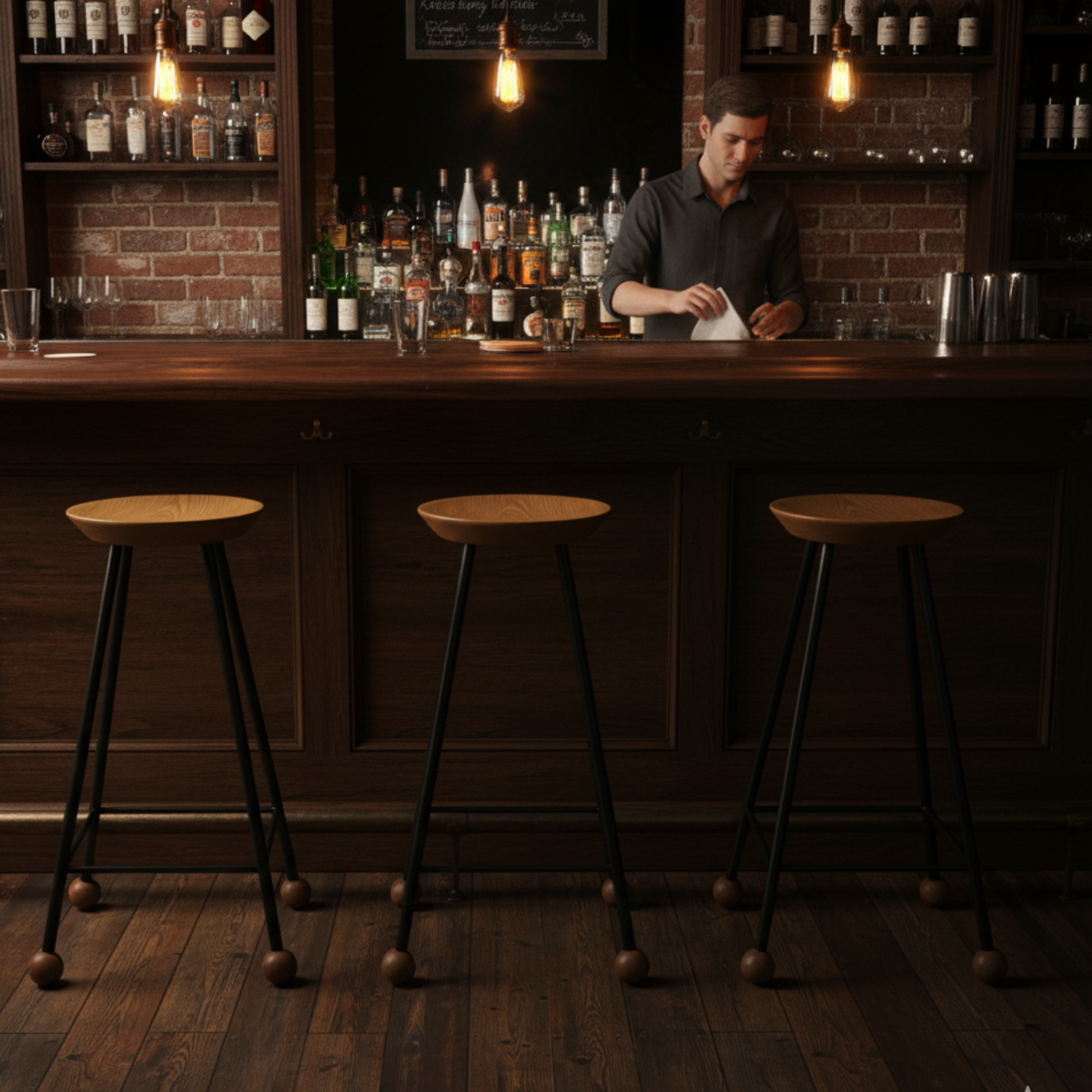 Bar Taburesi Ahşap Siyah Metal Ayaklı - 65cm