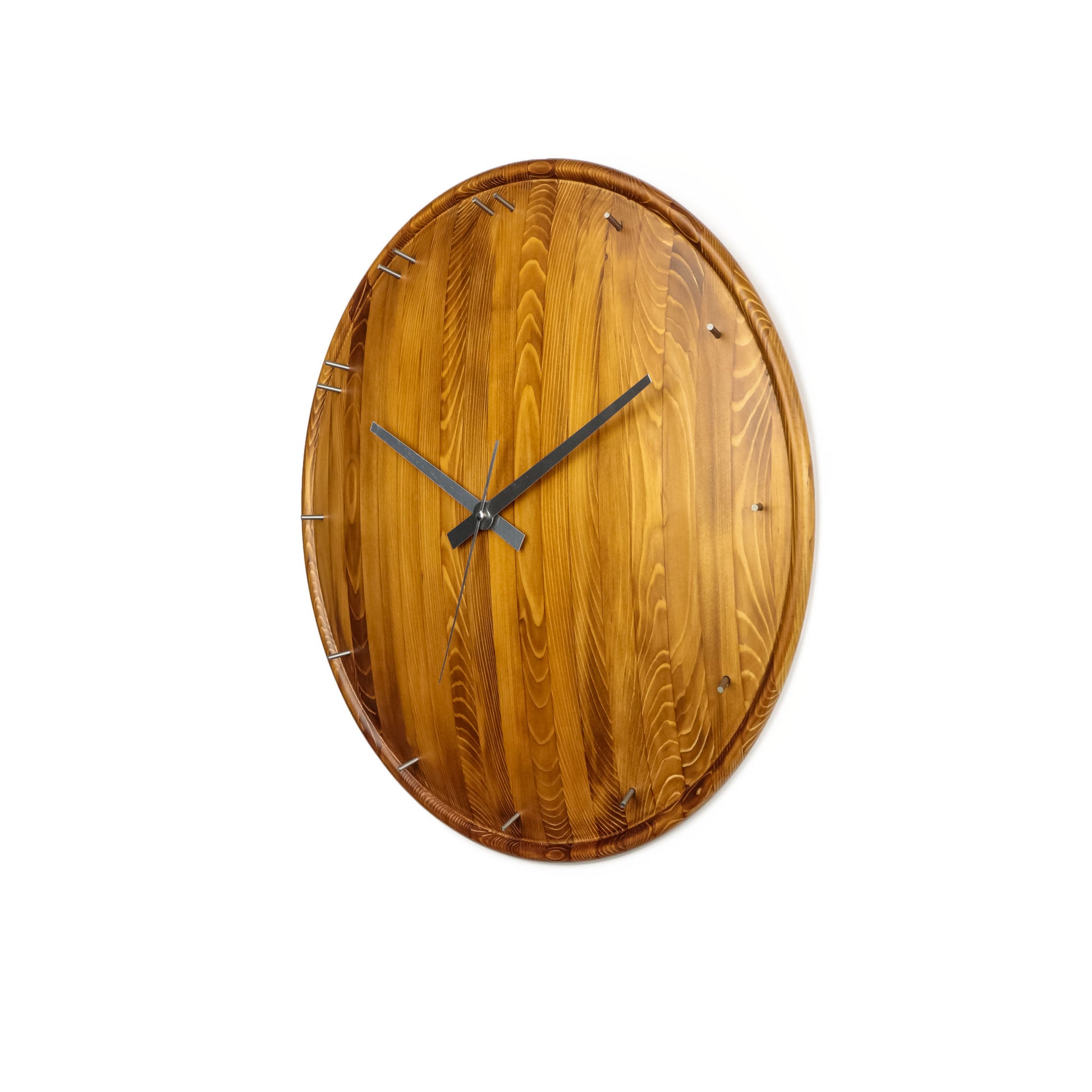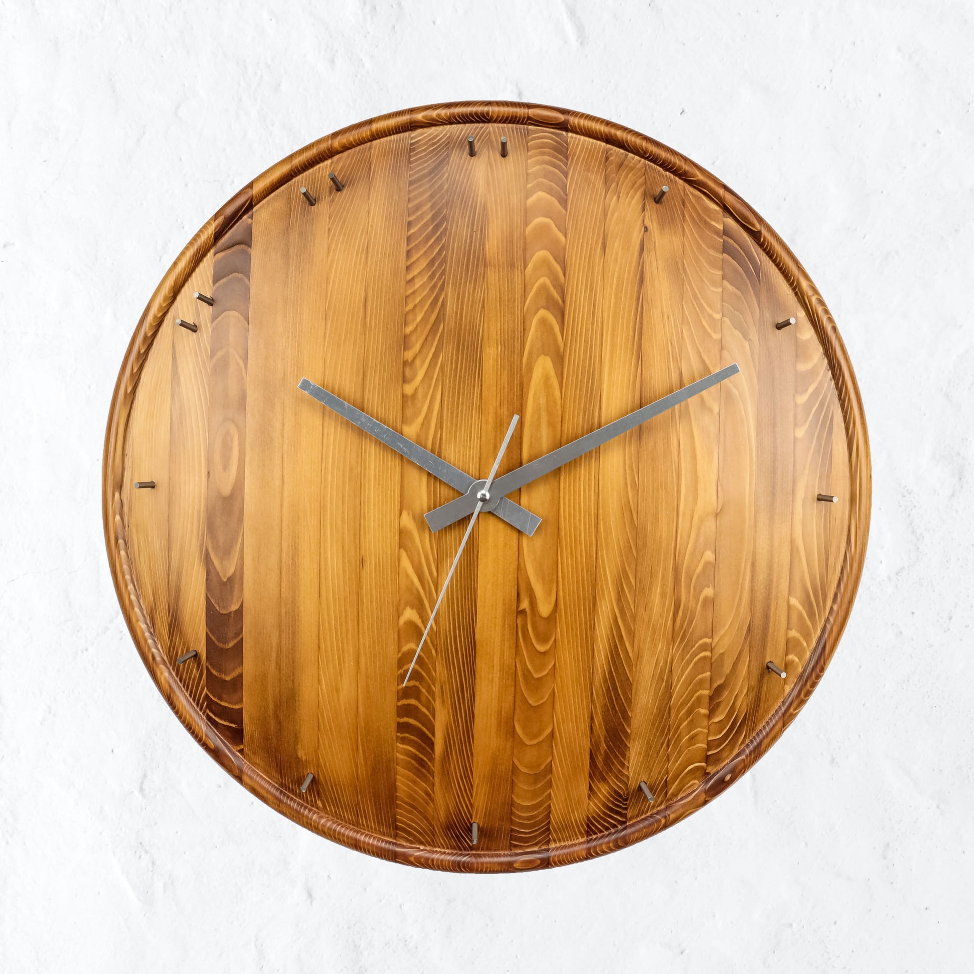 Doğal çam ağacının sıcaklığıyla modern tasarımın buluştuğu bu özel duvar saati, yaşam alanlarınıza estetik bir dokunuş katmak için tasarlandı. El işçiliğiyle üretilen bu saat, bombeli cam yüzeyi ve krom rakamlarıyla dikkat çeker.