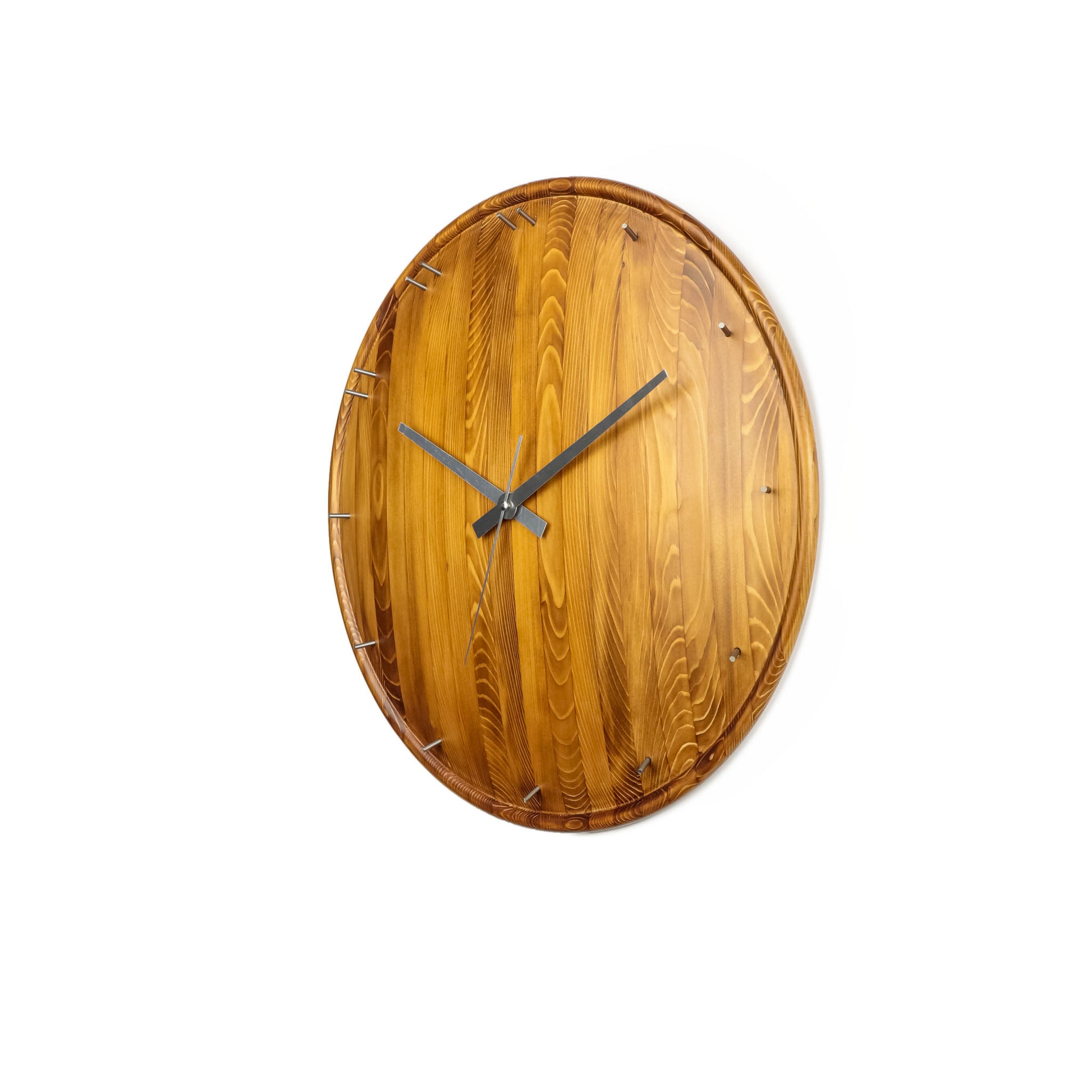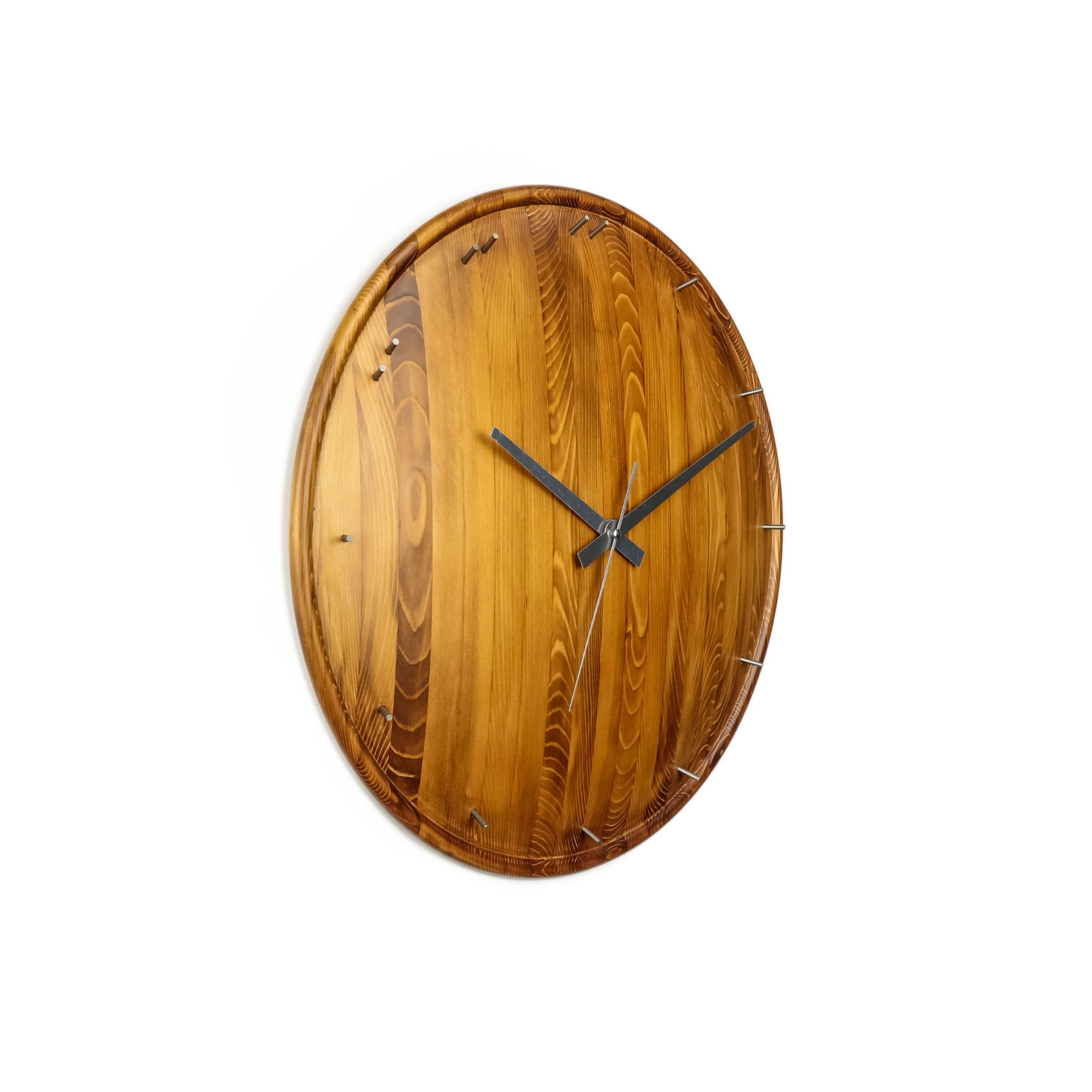 Her bir saat, çam ağacının benzersiz damar yapısı ve dokusuyla farklılık gösterir; böylece her ürün eşsiz bir sanat eseridir. Modern ve rustik dekorasyon stilleriyle uyumlu olan bu duvar saati, hem fonksiyonel bir zaman göstergesi hem de dikkat çekici bir dekoratif öğedir.
