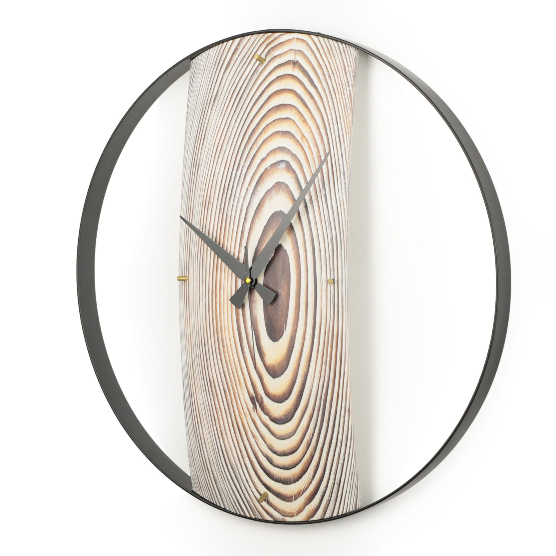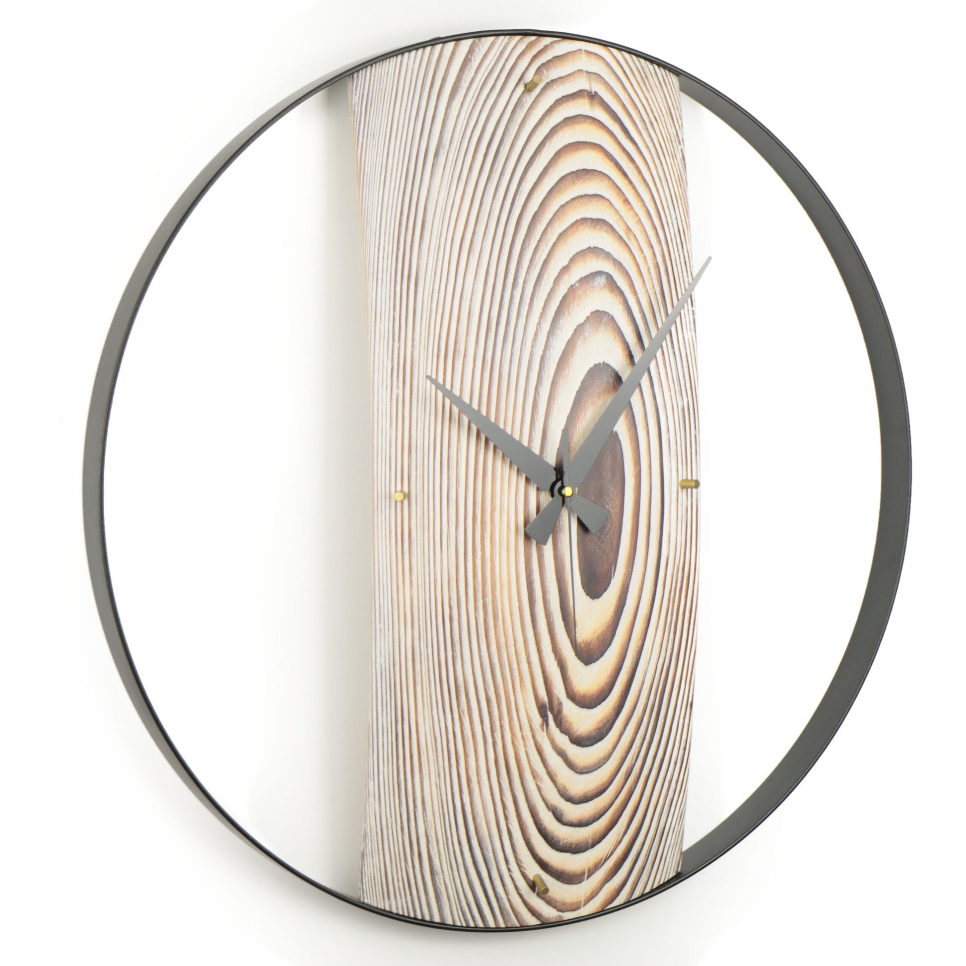 Duvar Saati Köknar Ağacı Eskitme Bombeli Metal Çemberli – Ø48cm