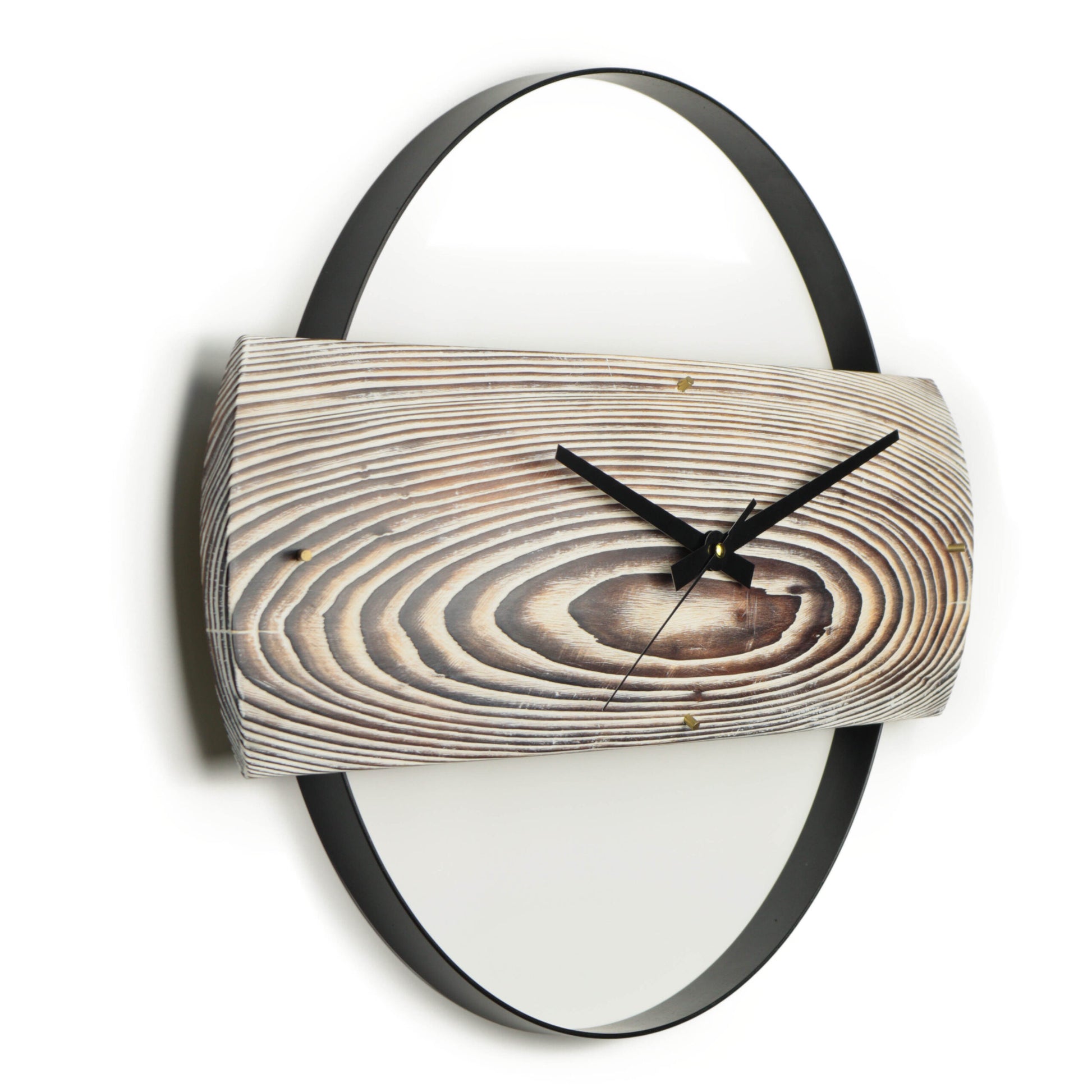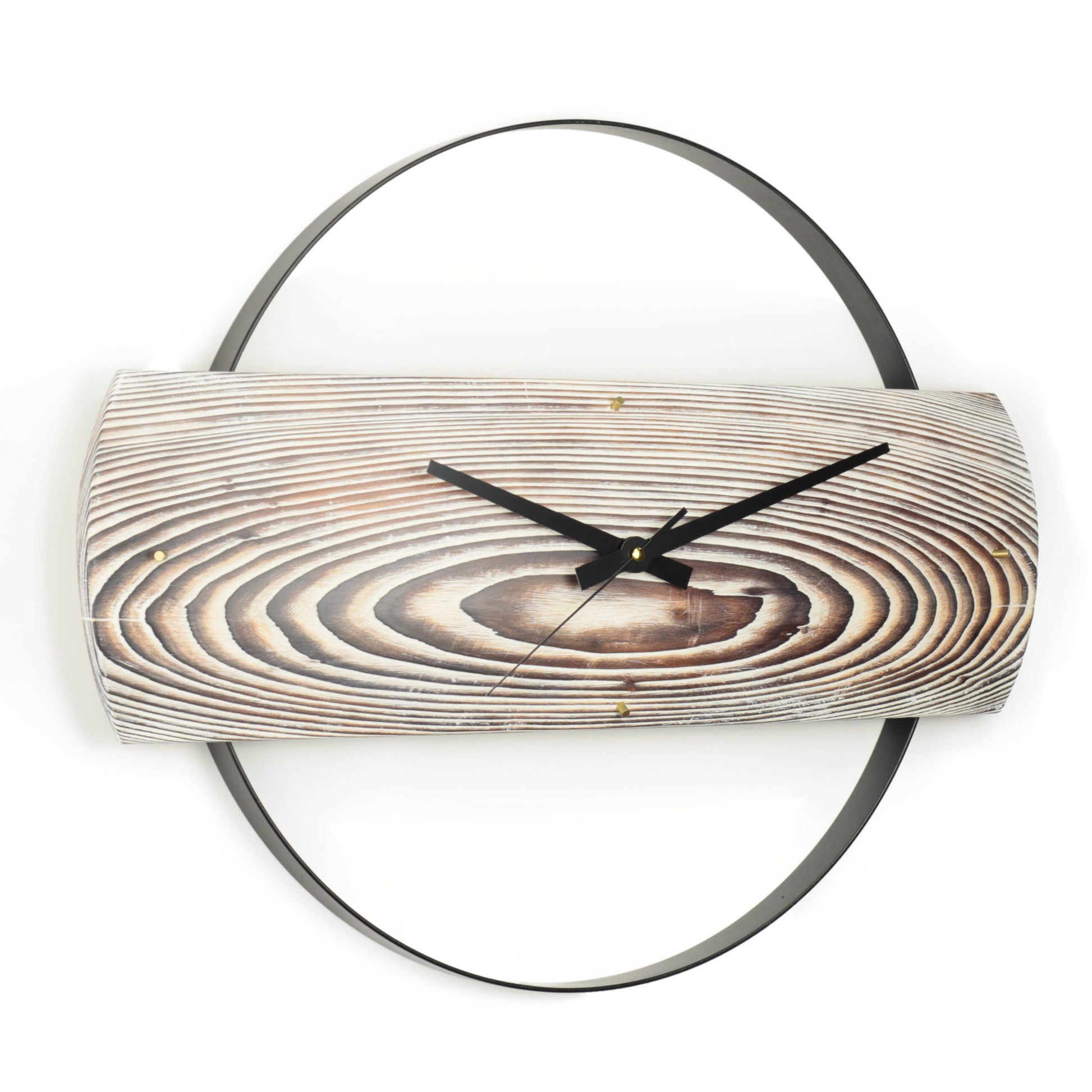 Duvar Saati Köknar Ağacı Eskitme Bombeli Metal Çemberli – Ø48cm