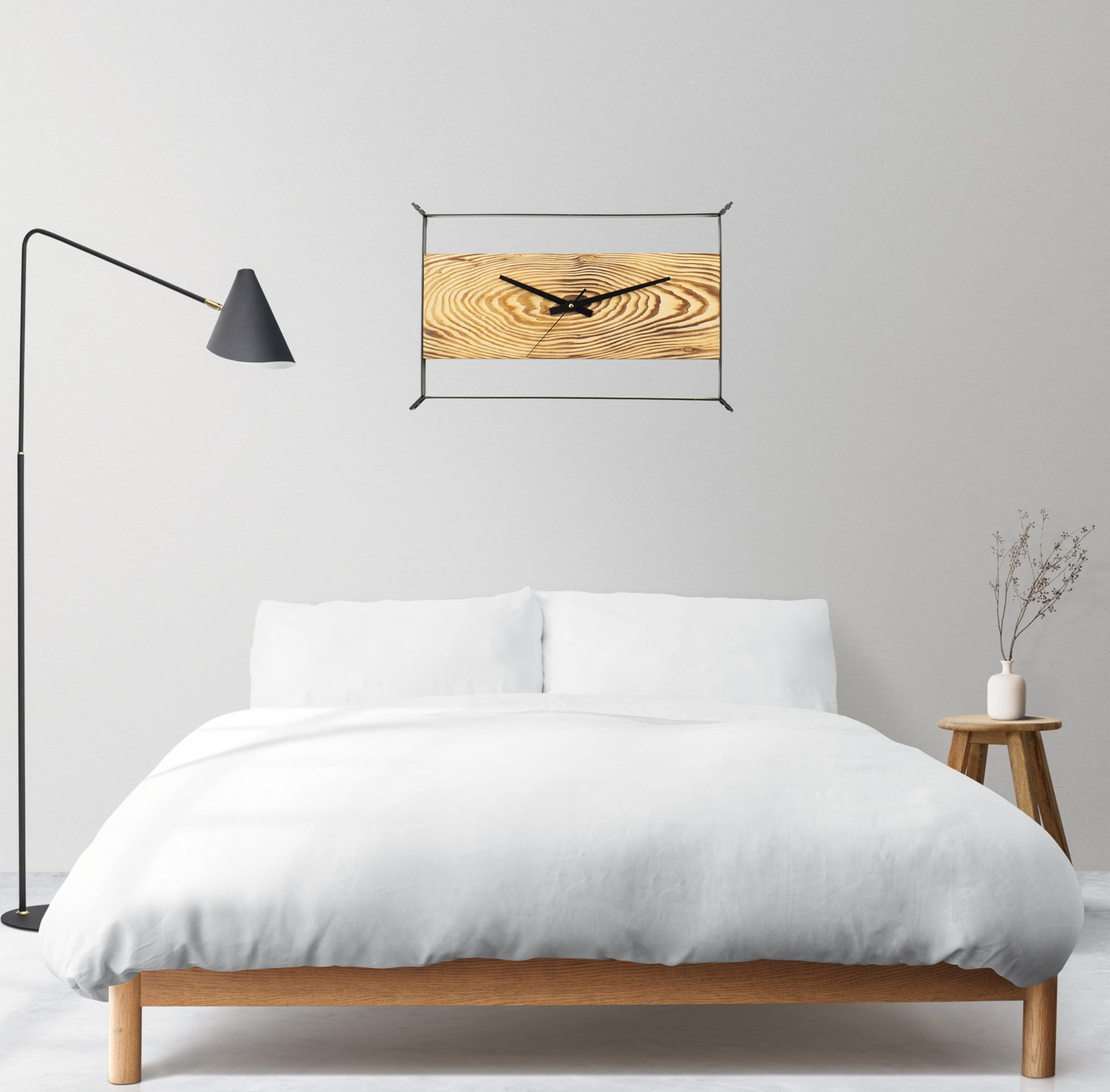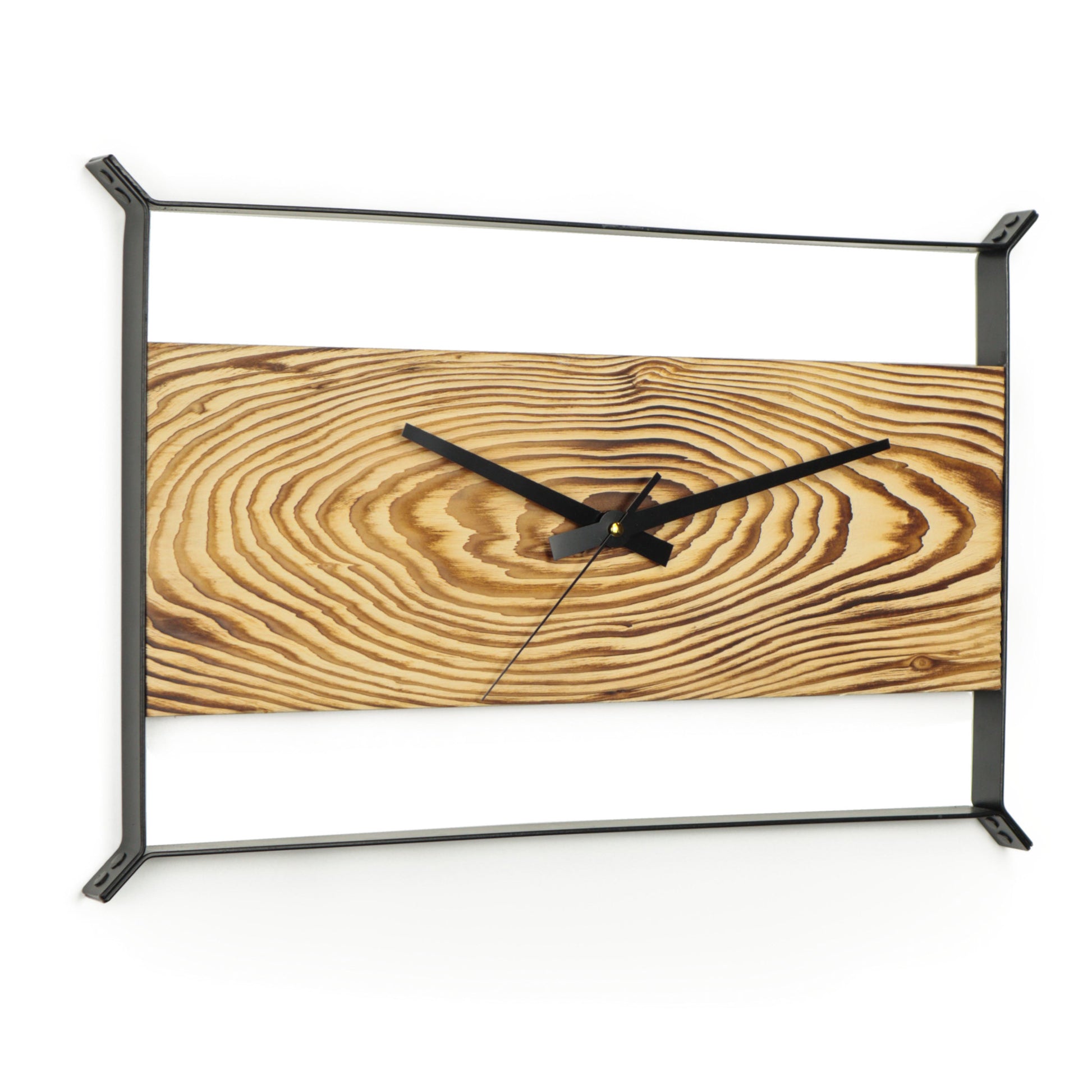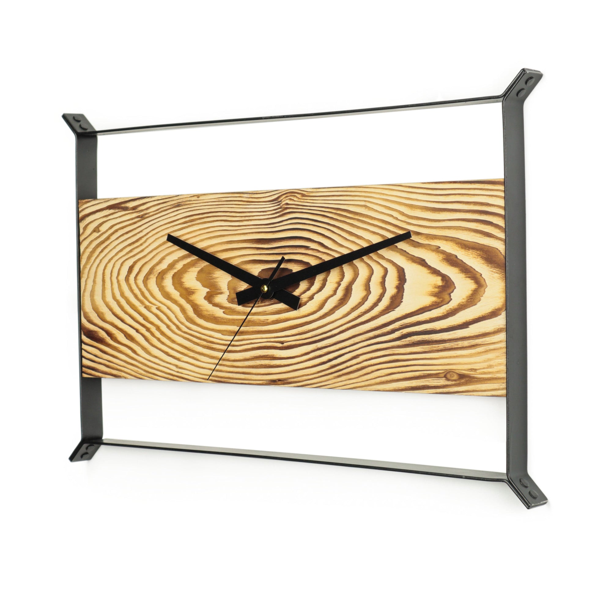 Metal Çerçeveli Dikdörtgen Köknar Ağacı Duvar Saati