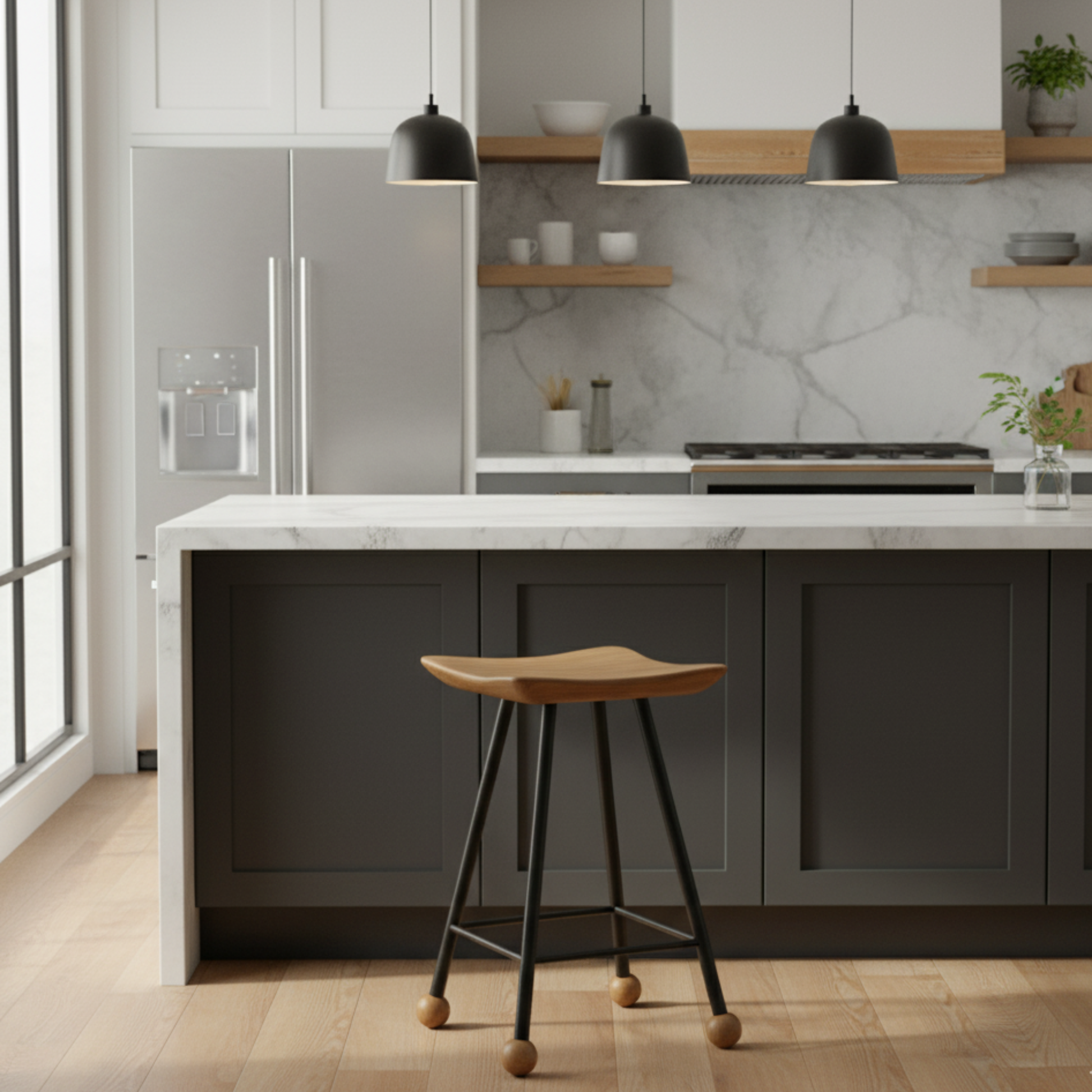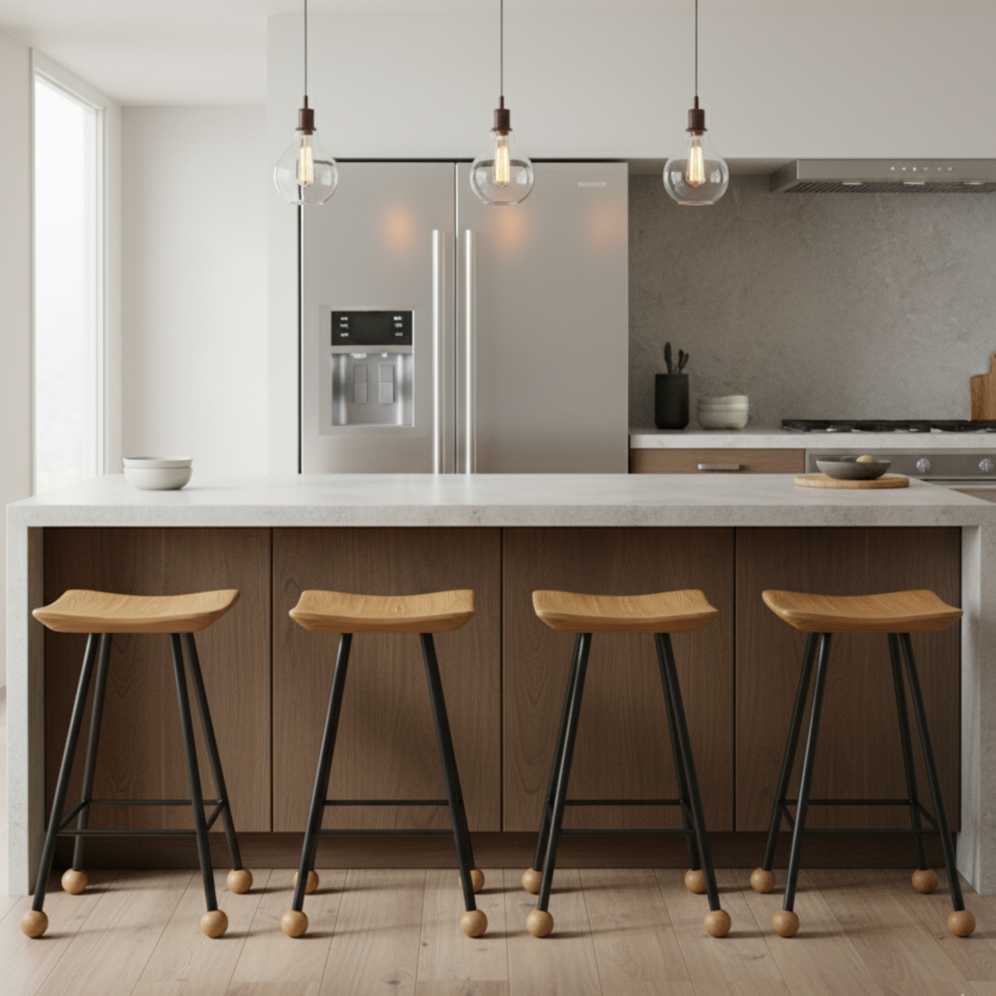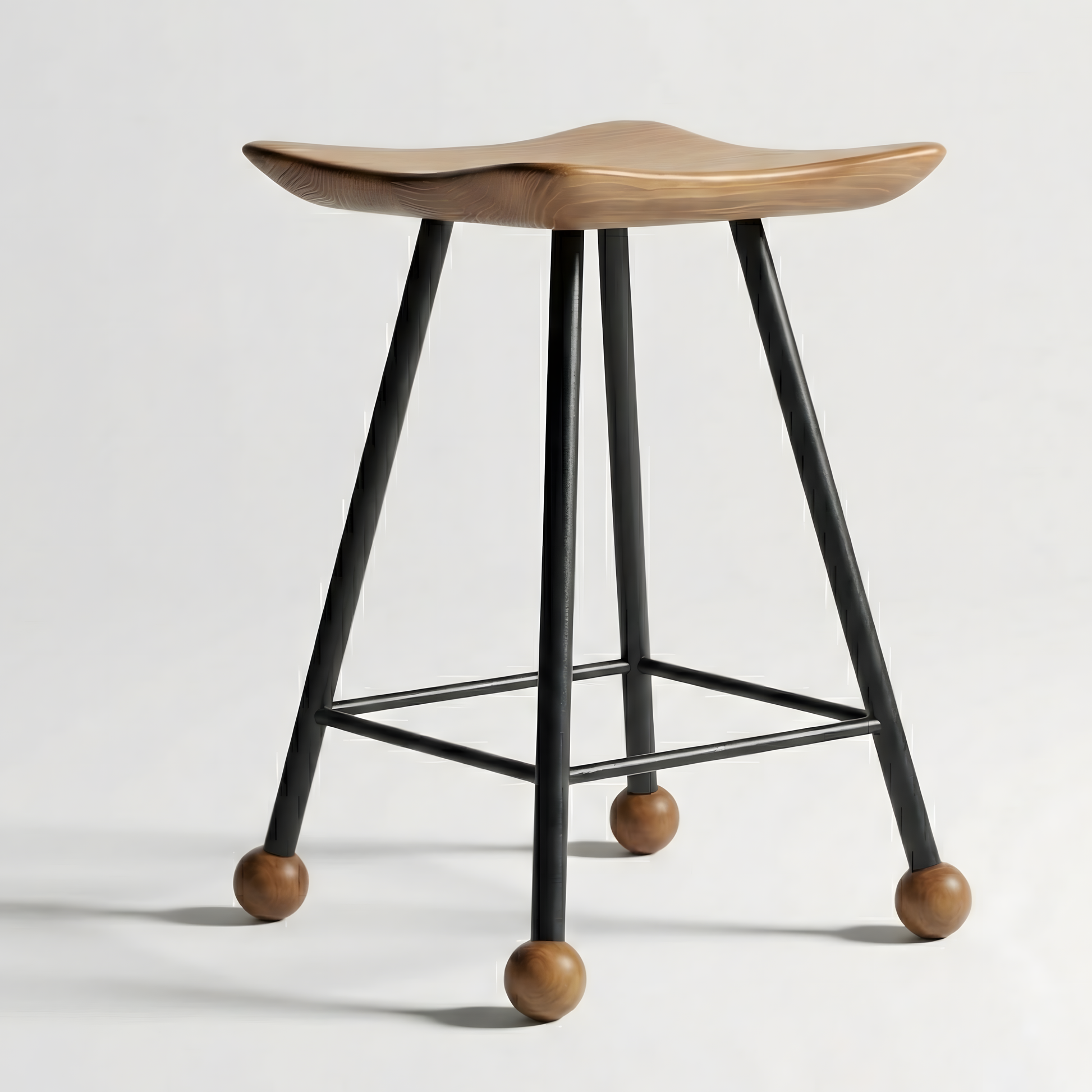 Tabure Ahşap Siyah Metal Ayaklı – 47cm