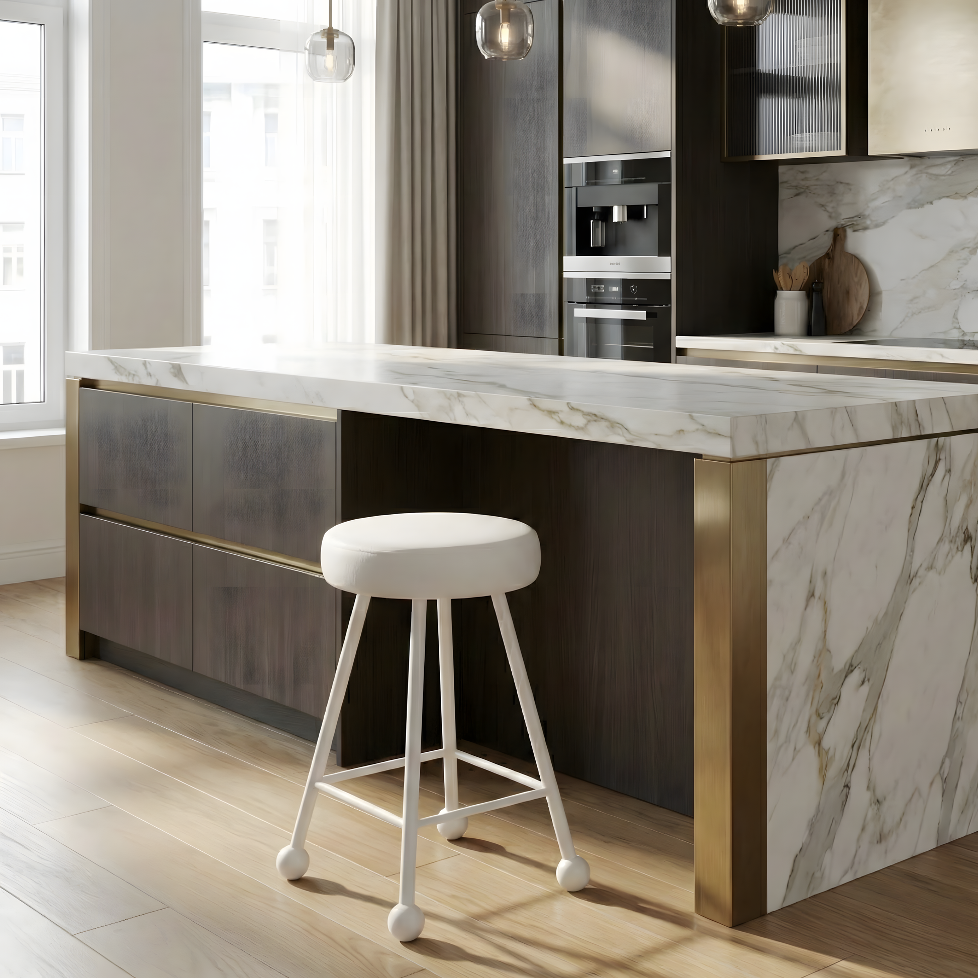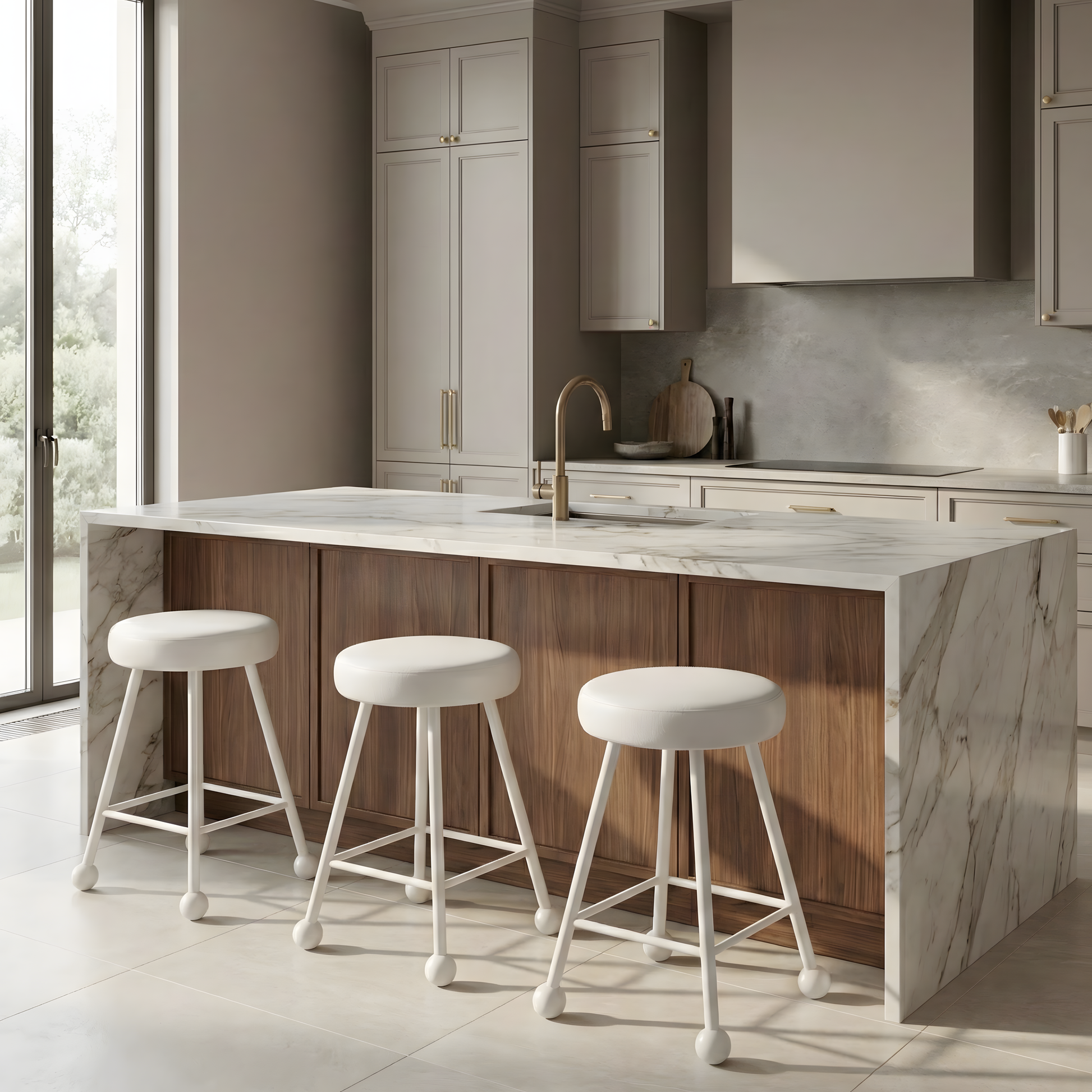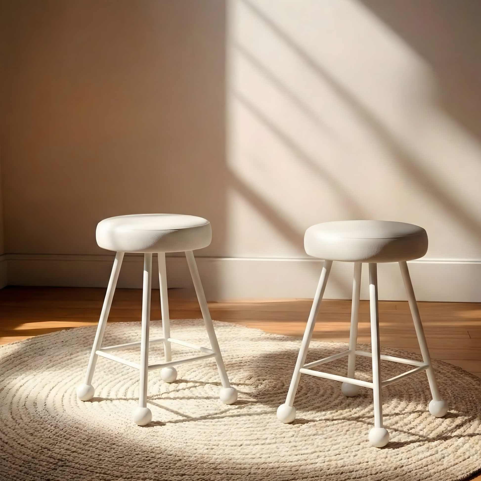 Tabure Deri Döşemeli Bembeyaz Metal Ayaklı – 47cm
