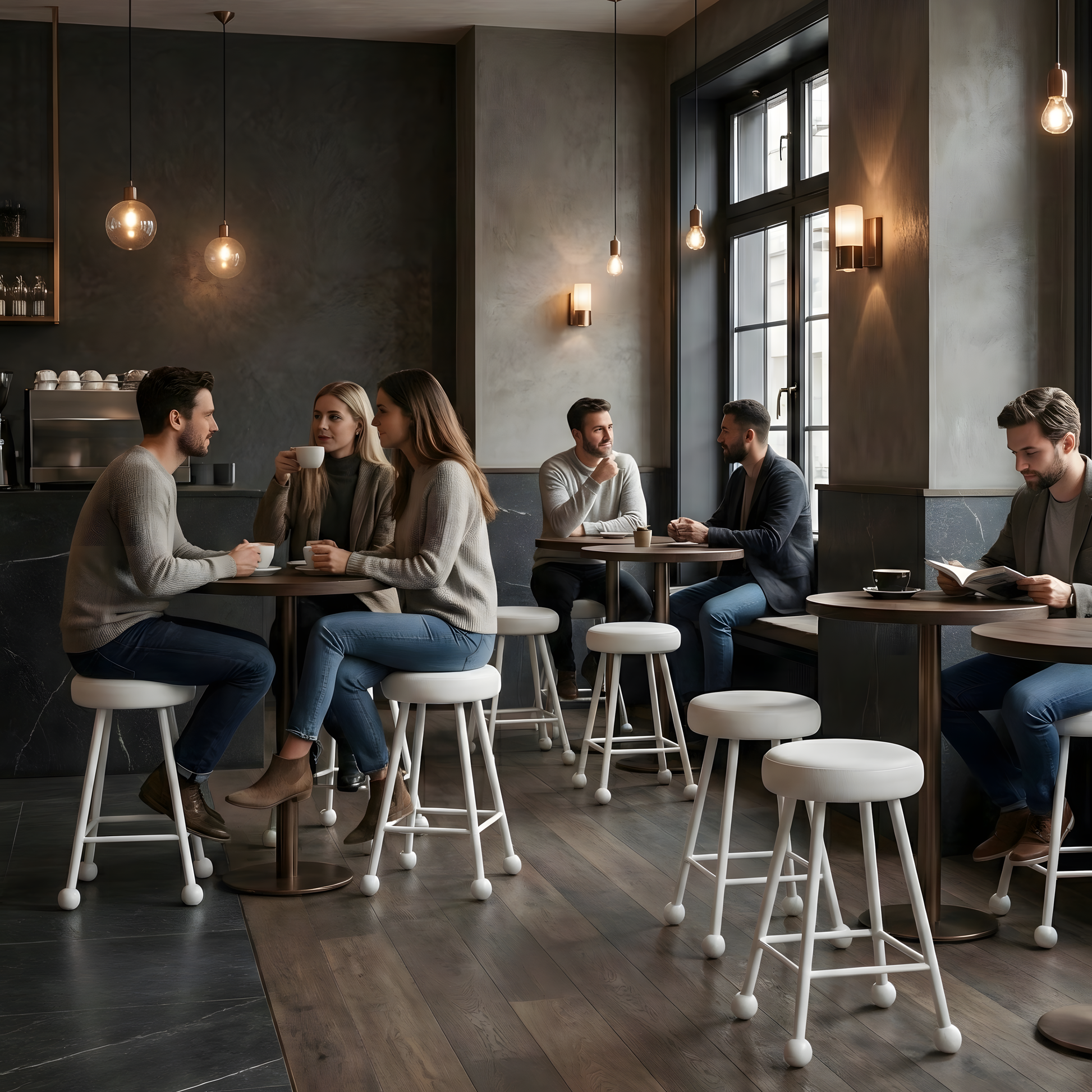 Tabure Deri Döşemeli Bembeyaz Metal Ayaklı – 47cm 19mm boru demir ve 10mm dolu atkı demiri kullanılarak sağlam bir yapıya sahip olan ürün, hem dayanıklı hem de estetik bir görünüm sunar. Üzerindeki tekstür boya ve elektrostatik fırın boya ile işlenmiş olan ürün, uzun ömürlü kullanım vadediyor.