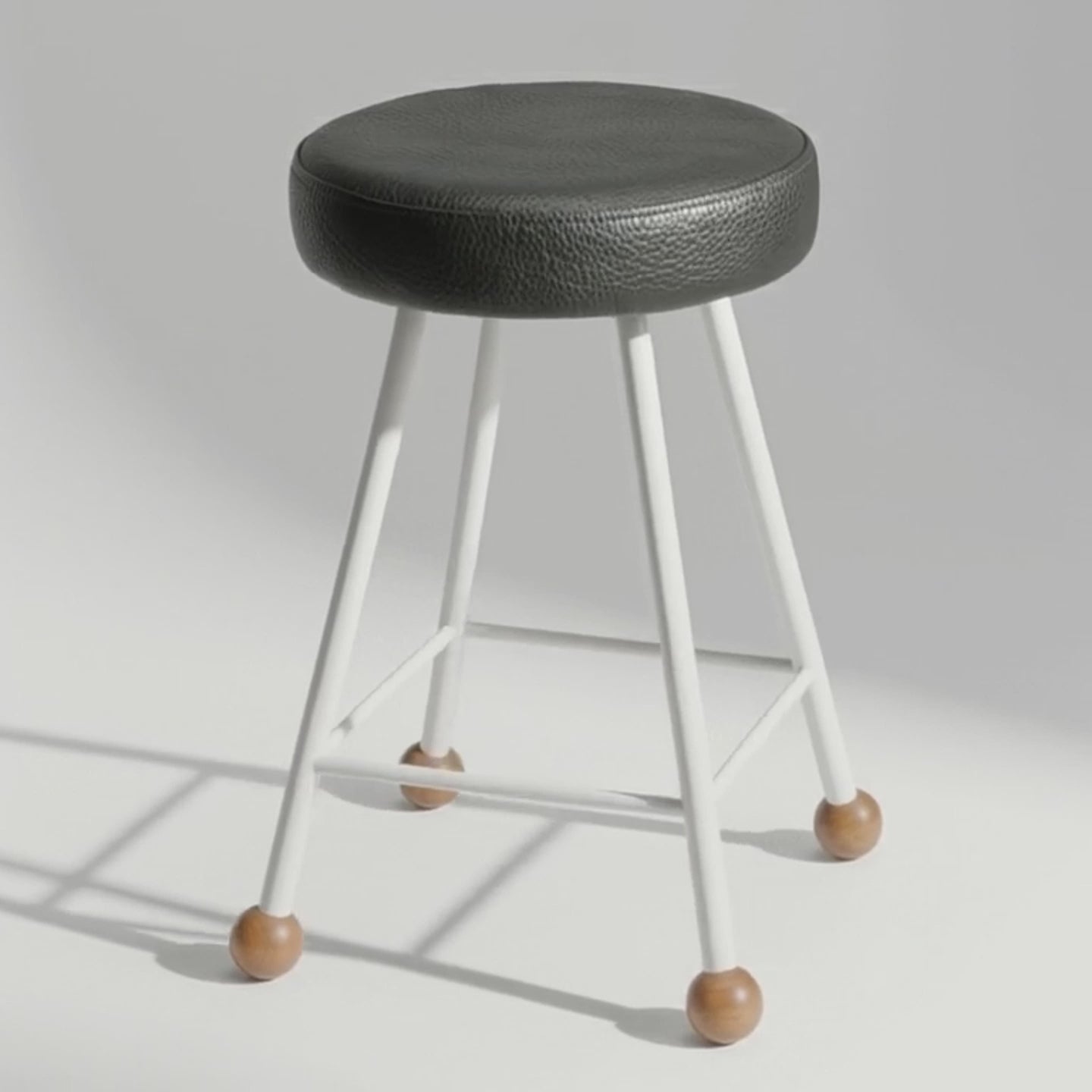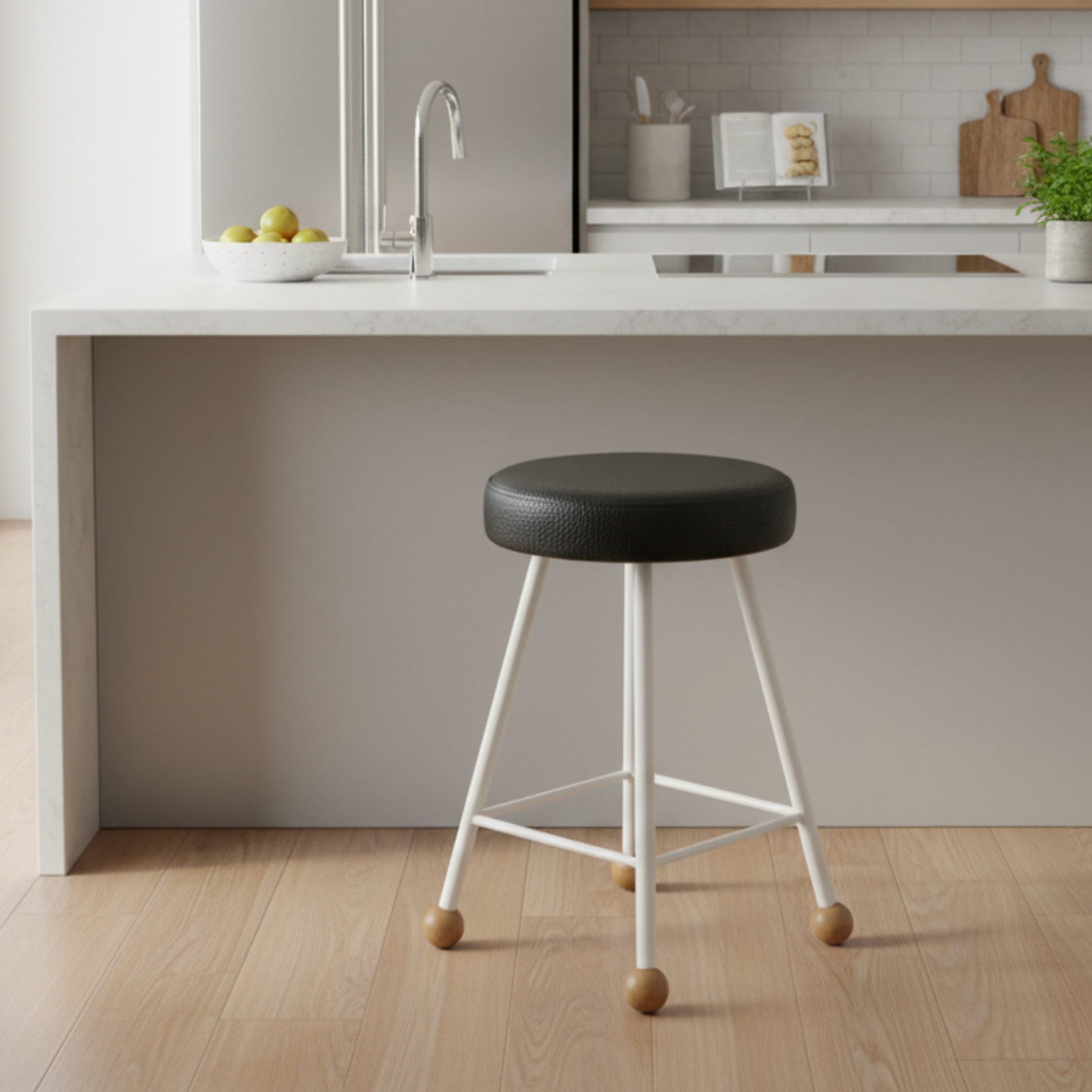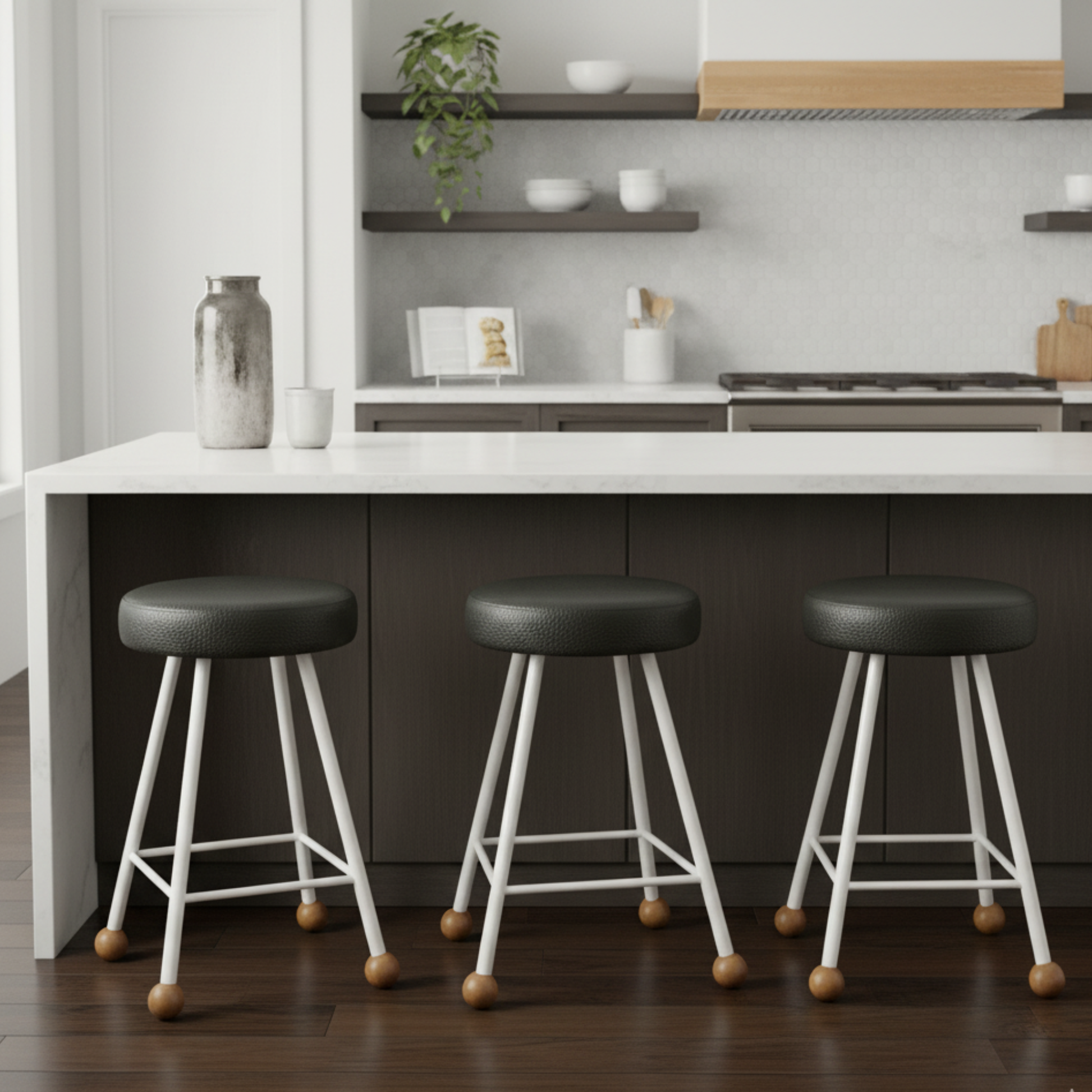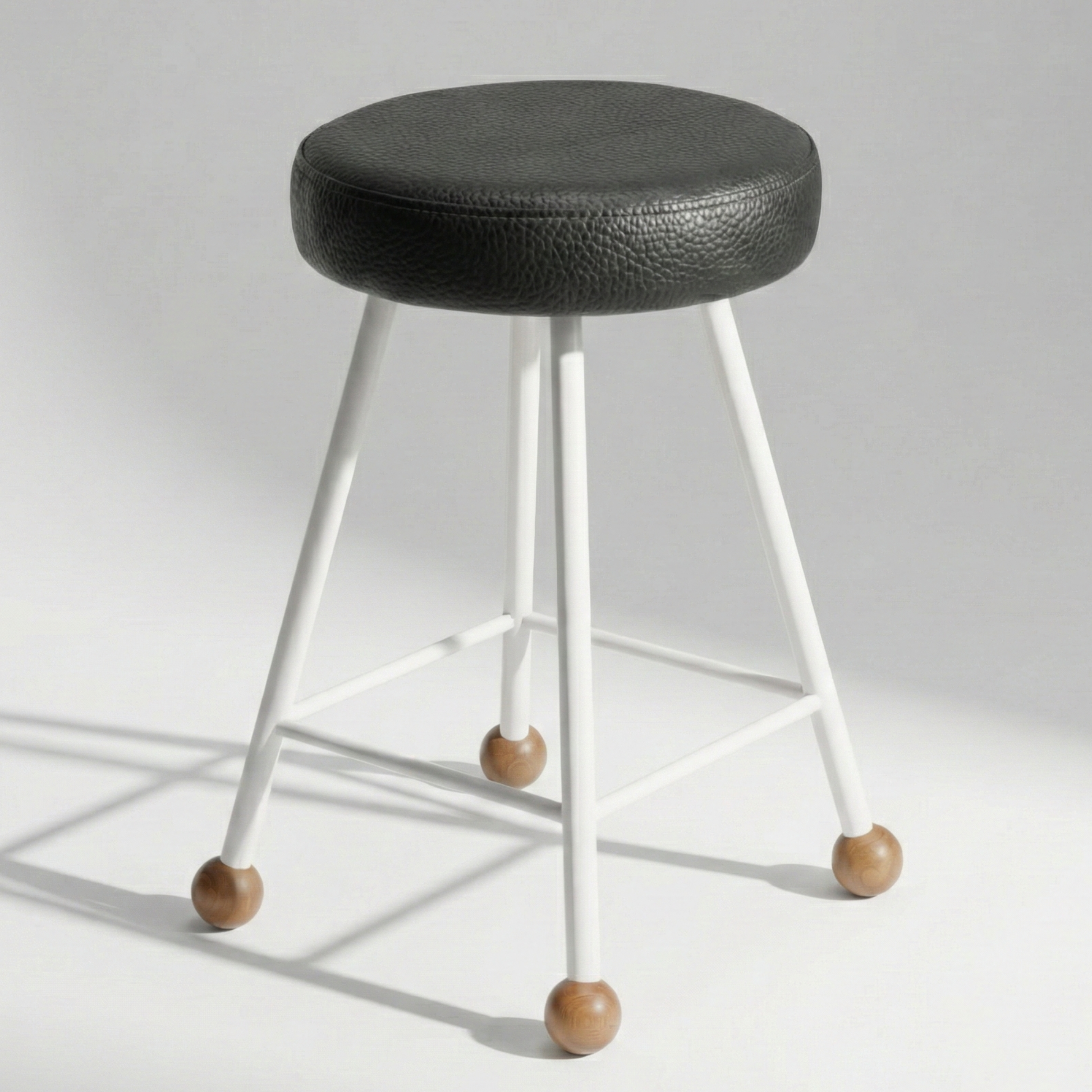 Tabure Deri Döşemeli Beyaz Metal Ayaklı – 47cm